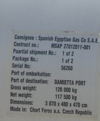 Construction of ethane tank its weight 120 tons , height 30.7 meters,diameter 4.8 meters .
